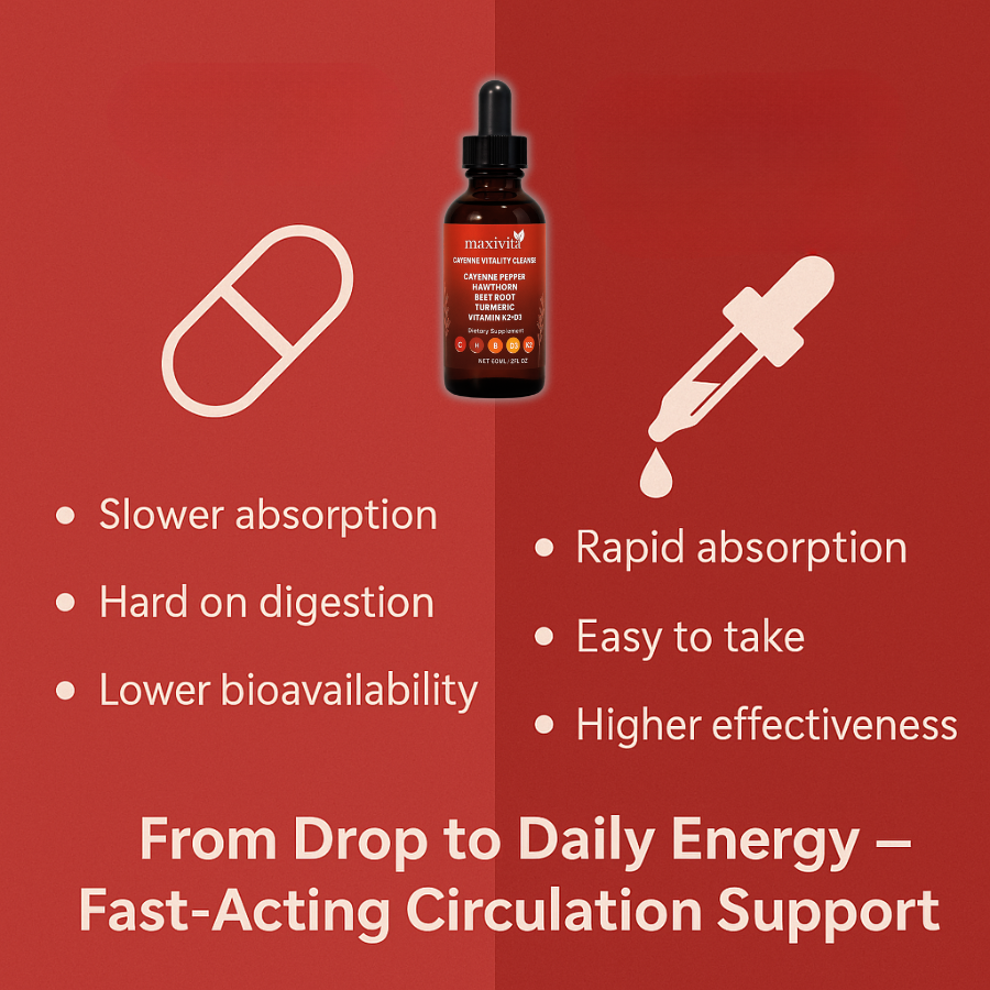 Power up your wellness routine with Maxivita Cayenne Pepper Blood Cleanse—a dynamic liquid drop supplement combining nature's finest herbs and essential vitamins. Each drop is packed with potent, time-tested ingredients to support digestion, immune health, and overall vitality.